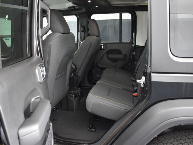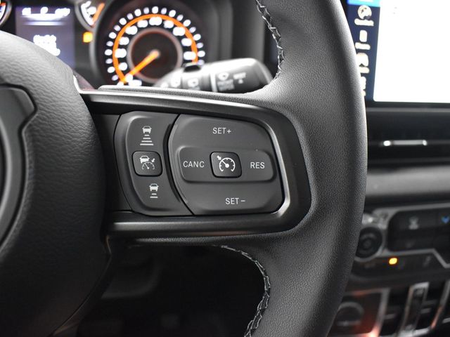 FM radio: SiriusXM, Apple CarPlay/Android Auto, Aux Battery, Black 3-Piece Hard Top, Brake assist, Cloth Low-Back Bucket Seats, Compass, Delay-off headlights, Driver door bin, Driver vanity mirror, Dual front impact airbags, Dual front side impact airbags, Electronic Stability Control, Freedom Panel Storage Bag, Front anti-roll bar, Front Bucket Seats, Front Center Armrest w/Storage, Front fog lights, Front reading lights, Illuminated entry, Integrated roll-over protection, Low tire pressure warning, Non-Lock Fuel Cap w/o Discriminator, Normal Duty Suspension, Occupant sensing airbag, Outside temperature display, Overhead airbag, Panic alarm, ParkView Rear Back-Up Camera, Passenger door bin, Passenger vanity mirror, Power steering, Power windows, Radio data system, Radio: Uconnect 5 w/12.3" Display, Rear anti-roll bar, Rear reading lights, Rear Window Defroster, Rear Window Wiper/Washer, Remote keyless entry, Speed control, Split folding rear seat, Steering wheel mounted audio controls, Stop-Start Dual Battery System, Tachometer, Telescoping steering wheel, Tilt steering wheel, Traction control, Trip computer, Variably intermittent wipers, and Wheels: 17" x 7.5" Black Steel Styled